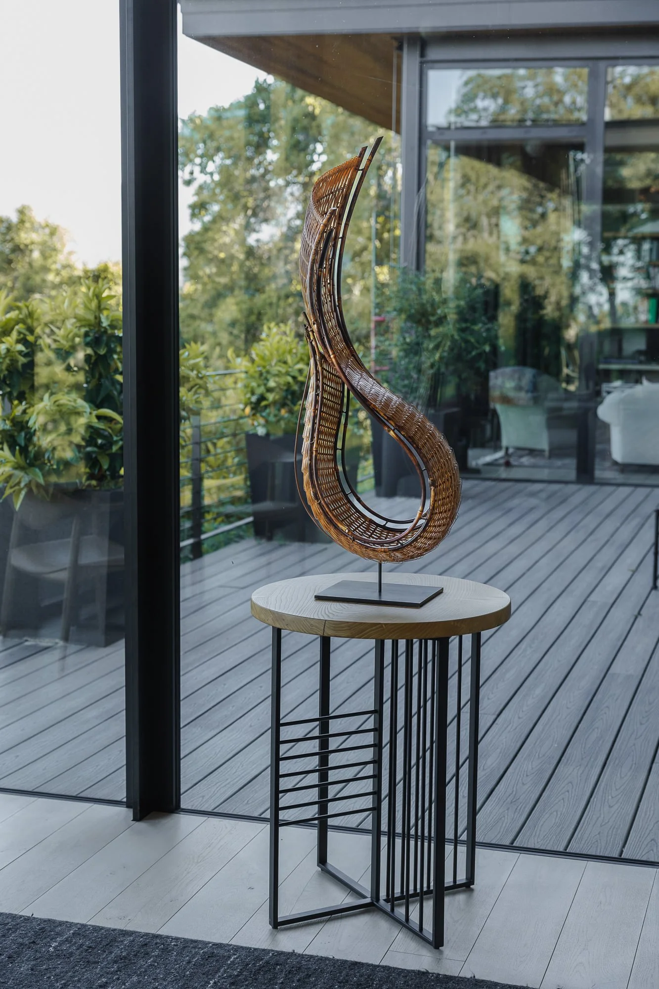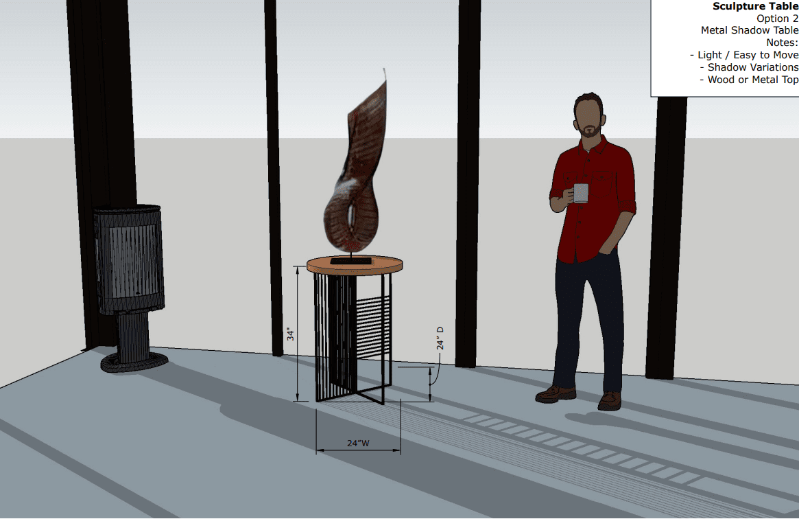 While viewing Bill’s lovingly curated home through the tiny lens of my phone, he shared with me the intricate bamboo sculpture he acquired in recent travels and his hopes for a custom table on which it could proudly perch. As he showed me different angles of this intricate sculpture against the backdrop of his southern-facing views, I noticed the captivating shadow extending from the sculpture – and the idea of the Shadow Table was born.